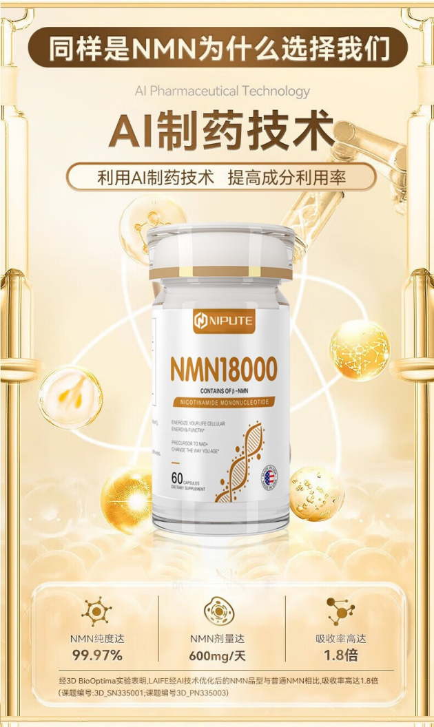 NIPUTE 180000 NMN是一款什么产品?为何效果会如此出色呢?据悉,NIPUTE 180000 NMN是美国一家百年企业研发的纳米高科技产品,它内含9种有效成分,产品纯度高达99.97%,以循环的方式来补充NAD+水平,使用产品后可以迅速地提升身体的NAD+水平,进而有效地改善身体状态。研究表明,其在肌肤抗衰、改善体力、抗氧化、提升男性功能方面具有极其出色的表现,在美国,它是很多男性的标配产品,更被大量媒体誉为是美国男性强壮的秘密。
