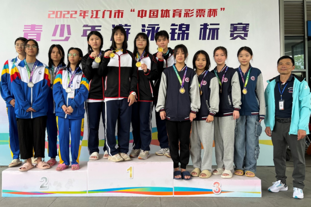 (⊿⊿⊿江门一实游泳队在江门市游泳锦标赛斩获高中组女子混合泳接力第三名)