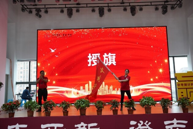 随后是校领导为中考倒计时揭牌,高中部老师、学长学姐送祝福,老师代表、家长代表发言,授旗,全体初三老师宣誓,学生代表发言,全体初三学生宣誓并向全体老师行谢师礼。