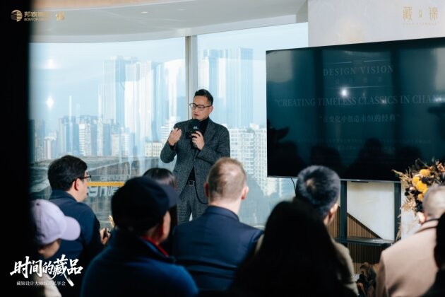 「时间的藏品」沙龙将举办场地移入藏锦交标样板间内,让参与其中的人更直观的感受这座城市的心跳与藏锦价值观——窗外,是成都339电视塔的流光溢彩与府河奔涌不息的波澜;窗内,是藏锦以沉静姿态铺展的一隅私享空间。
