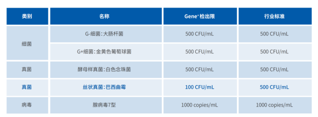 吉因加真菌(巴西曲霉)检出限低至100 CFU/mL,优于行业标准5倍。2021年,中国食品药品检定研究院病原mNGS项目组在《深入病原mNGS技术质量控制与评价研究 探索建立创新型体外诊断试剂质量评价体系》一文中指出:现阶段病原mNGS检测试剂可以在24小时检测周期内,20M测序数据量的条件下,在含有1×10^5 cells/mL人源背景的样本中测到浓度≥500 CFU(或copies)/mL的病原微生物。