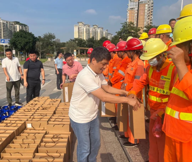 当天,深圳市河南鲁山商会携手深圳市关爱行动公益基金会、深圳河南商会、广东平顶山商会、深圳宝安松岗街道办、深圳宝安松岗工商联在松岗文化广场共同开展了一场以“豫商助农乡村兴,深圳关爱环卫工”为主题的活动,慰问松岗街道1000余名环卫工人,为他们送上了1200箱产自河南鲁山的玉露香梨和柿子,将助力乡村振兴的丰收喜悦,分享给“城市美容师”环卫工人。深圳市关爱行动公益基金会总监阳海军应邀出席了活动。